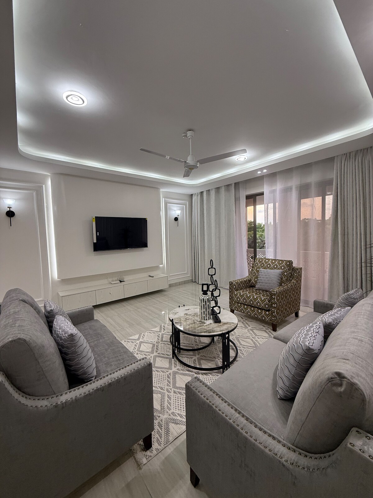 Welcome to this newly furnished apartment with Air Conditioning (AC) & ceiling fans in all the rooms. Hot shower. Smart TV. Free Netflix. Free cleaning after every 2 days. Washing machine & Dryer in balcony. Amenities: Gym, Basketball court, Games room, Children’s playground, Beautiful garden seating area, Olympic-size swimming pool. Perfect for both tourists and business travelers! You will be close to everything you need at this secure centrally-located property in Mombasa.