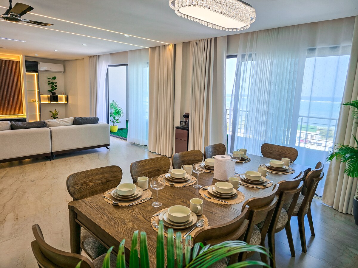 Why you’ll love your Seafront escape: -Top Floor all ensuite 3BR + 1 DSQ (so total of 4 bedrooms) - 5 beds; 1 King, 2 Queen and 2 single beds. - Beach: 3 min by Tuk Tuk; 10 minute walk - AC (extra charge 20$ per night) - Pool with baby-pool - Uninterrupted ocean views - Washing machine - Indoor + Outdoor dining areas - Close to malls, supermarkets, restaurants, waterpark - Fast Fibre-Optic WiFi - Lift - Fully equipped kitchen - 24/7 security & parking