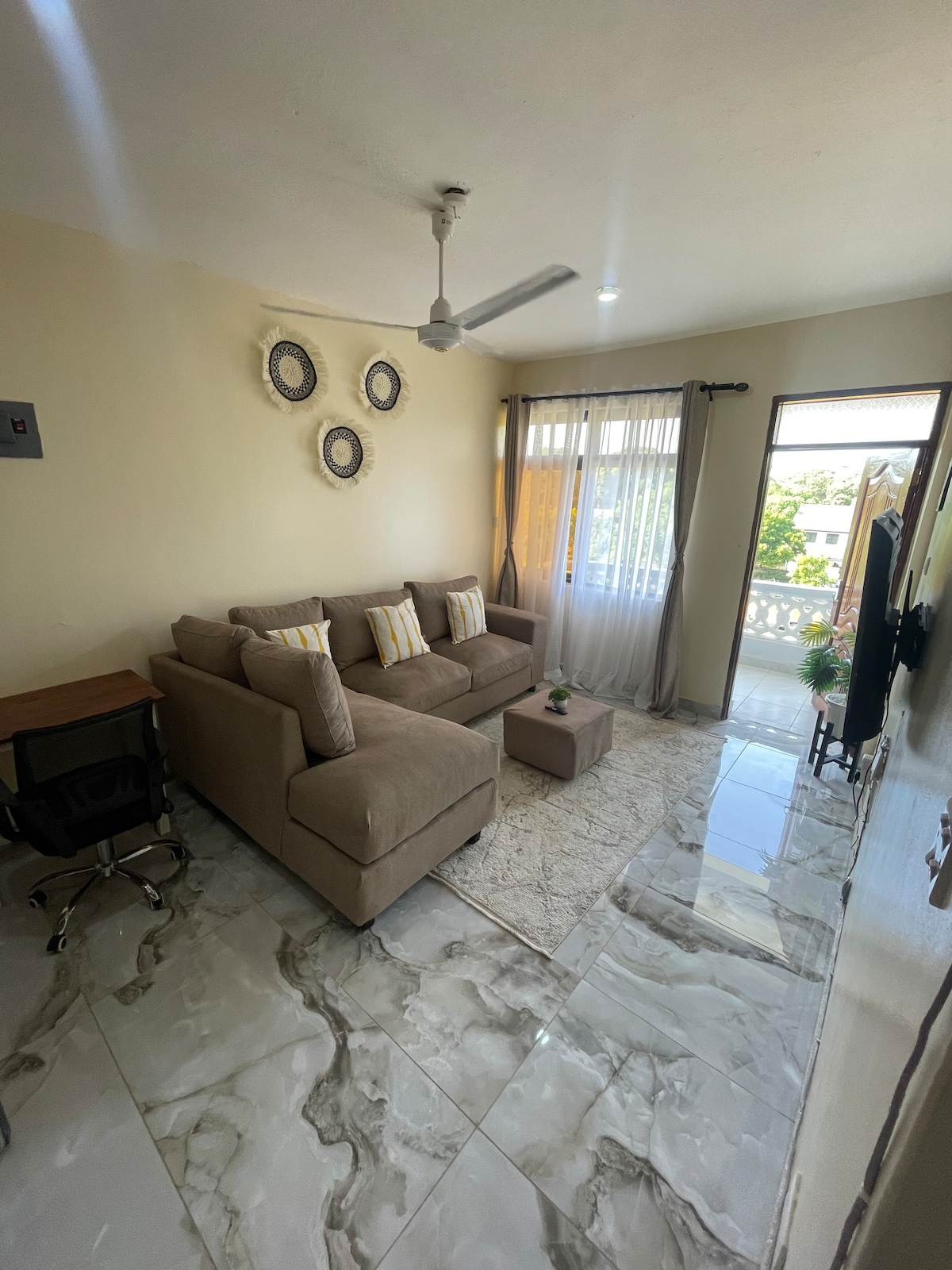 Ideal for short-term stays in the coastal city of Mombasa, Kenya 🇰🇪 The Studio apartment is designed to offer utmost serenity. You can catch a glimpse of the distant sea line through the window with a better view at the roof top. Whether on holiday or work trip or both, its conveniently located and easily accessible with ample parking. The apartment is near Kenya's 🇰🇪 premium beach hotels 🏨 in Shanzu area. Its a walking distance (500meters) to the beach ⛱️ and the blue-sky ocean 🌊