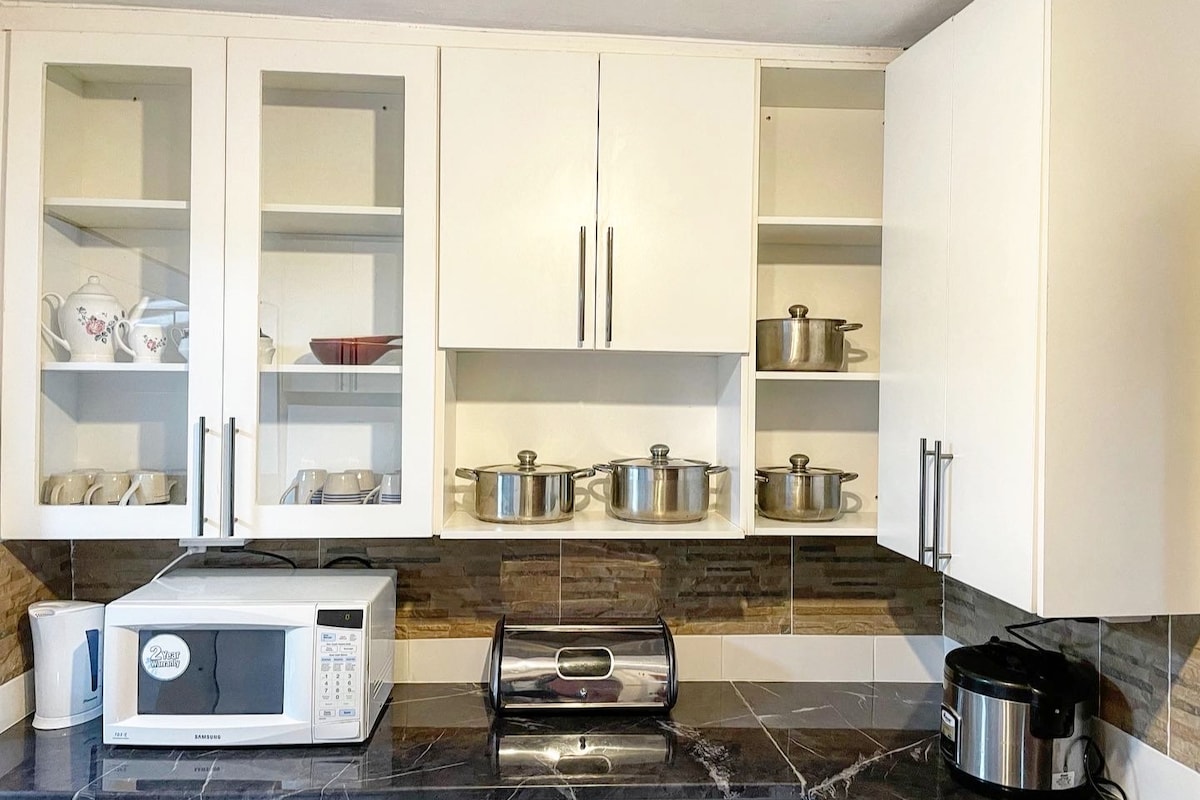 Our home set in a serene, secure private village, complemented with it's own dam and wildlife. 4 large bedrooms and 4 baths to yourselves while you relax and enjoy what the Eastern Highlands has to offer. Pool table, ping pong, darts, and some board games, various tv channels, and the complimentary unlimited WI-FI will keep you entertained. The solar system will reasonably keep you well lit, while 2 large solar geysers provide constant hot water!