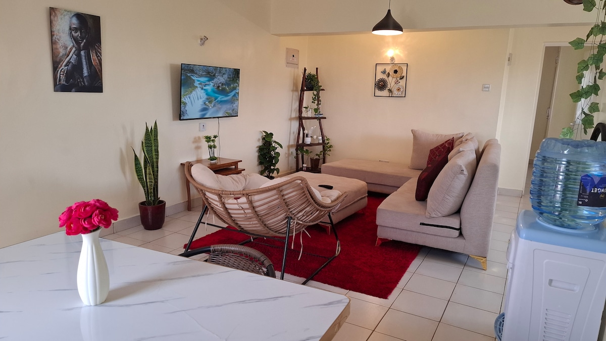 Near JKIA Airport, ideal for long layovers, overnight transit, delayed or cancelled flights. Instant booking. 24Hr check-in. • Private apartment, own gated compound. • 2 bedrooms, 1 bath. • High speed Wifi 30mbps. • Comfortable beds, 10-inch orthopedic mattresses. • All amenities available. • 2 min from Imaara Mall (gym, restaurants, pharmacy, forex, banks, hospitals, supermarket, laundry, salons, barbers, spa, pubs, etc.) • Check-in available 24hrs. • Noon checkout.