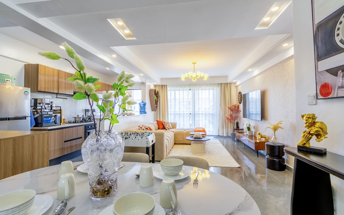 Escape to this stylish, modern haven nested in a vibrant and convenient neighborhood. The apartment has stunning airport & city views, cozy interiors, and top amenities like fast Wi-Fi, Netflix, rooftop restaurants, convenient stores and spacious free parking. It's perfect for adventurers or those seeking calm. It's near JKIA, SGR and the CBD. Enjoy local charm & comfort. Your dream getaway awaits!
