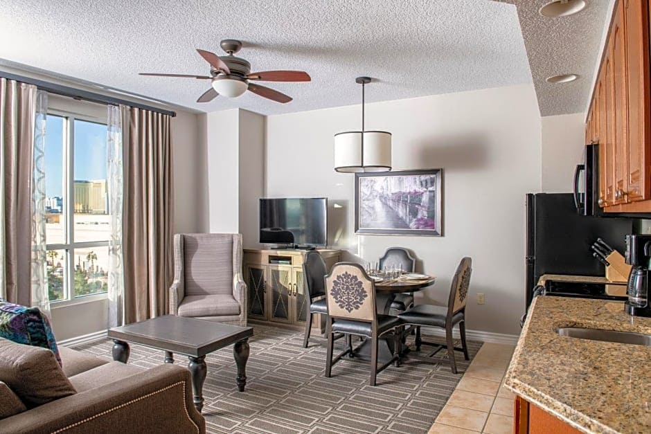 A Mediterranean-style vacation retreat just one mile from the Las Vegas Strip, the three towers offer exceptional views of the dazzling Las Vegas skyline, desert mountains, and the resort's lush courtyard. Lounge by the resort pool, pick up a coffee from the on-site Starbucks, or grab a bite to eat. Outside the resort, you can enjoy outdoor fun at picturesque locations like the Grand Canyon, Lake Mead, and Red Rock Canyon. Plus, catch the famous fountain show at the Bellagio.