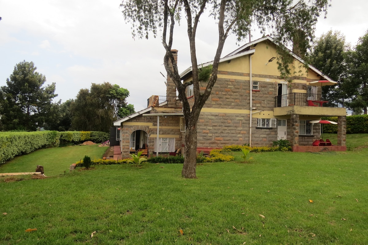 Relax with the whole family or friends at this peaceful place . The 4 bedroom house is situated on 2 acres of private land next to Mt Kenya Forest and can accommodate 8 people comfortably. The property is 19km from Naromoru town, 7km of which is on all weather road. It’s a ride worth the destination! Enjoy nature trails in the forest, visit the Mau Mau caves, read a book while facing the forest or visit the animals at the farm.