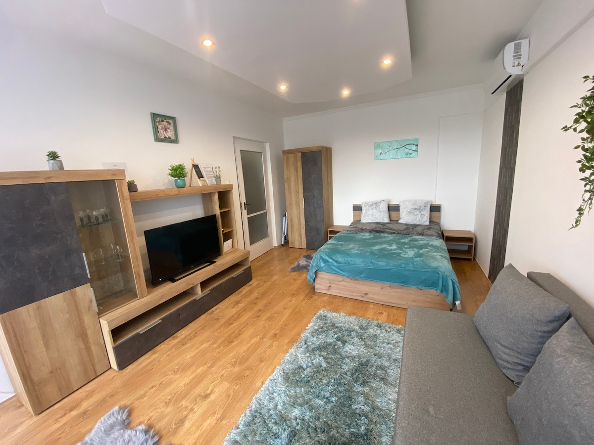 Discover modern urban living in our centrally located Airbnb apartment. This sleek one-bedroom retreat in a contemporary building is an ideal choice for up to four people, thanks to an additional futon. Perfect for solo travelers, couples, or small groups seeking convenience and style. Fedezze fel a modern városi életet központi elhelyezkedésű Airbnb apartmanunkban. Ez a letisztult egy hálószobás menedék a kortárs épületben ideális választás pároknak, barátoknak vagy akár családoknak .