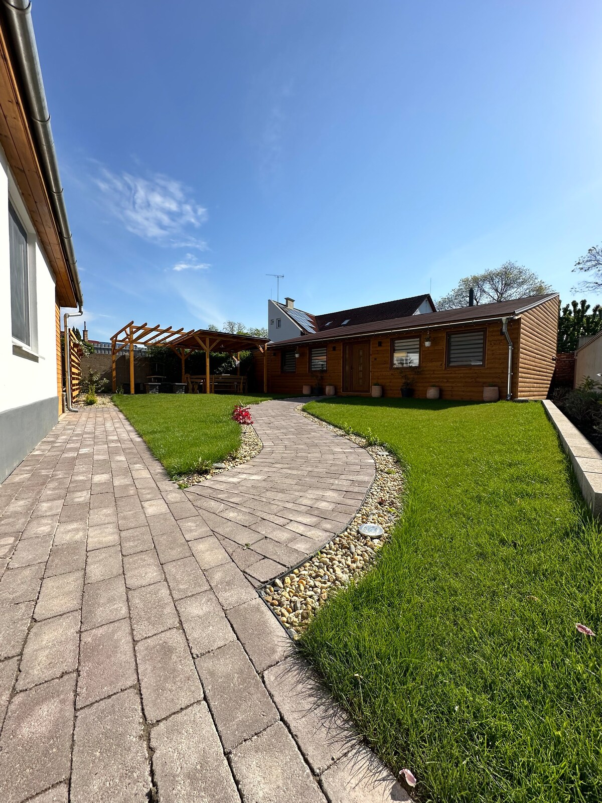 Discover a serene escape for your entire family at this peaceful home. This spacious house features a large yard, perfect for enjoying green grass and beautiful trees, or for playing on the paved area. Conveniently located just minutes from the supermarket, and a short 10-minute drive from the Zoo and Aquapark, this cozy house is an ideal choice. It comfortably accommodates up to eight guests and offers parking for two cars in the yard.