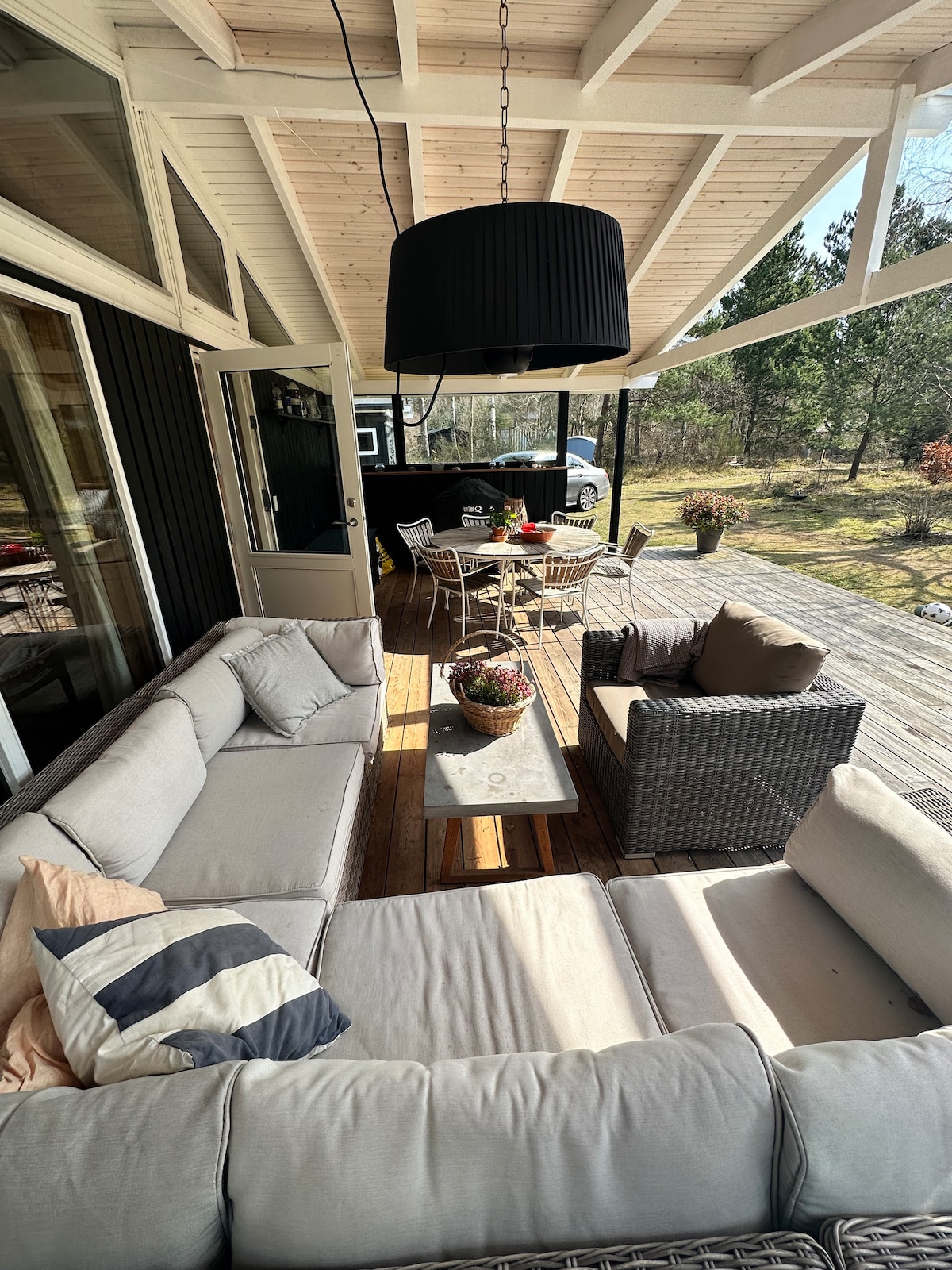 The beach house is 5min walk from a beautiful private-entry beach and 15min walk to downtown Tisvilde and has a beautiful private garden. The house consist of two separate cottages connected via a roofed patio and a spacious 200sqm terrasse/bbq area ideal for any warm or colder night or day with an outdoor dining table for 14 persons. The big cottage (120sqm): 3 bedrooms 2 bathrooms kitchen, dining room and open living area. Cottage 2 (60sqm): 2 bedrooms 1 bathroom kitchen and living area.