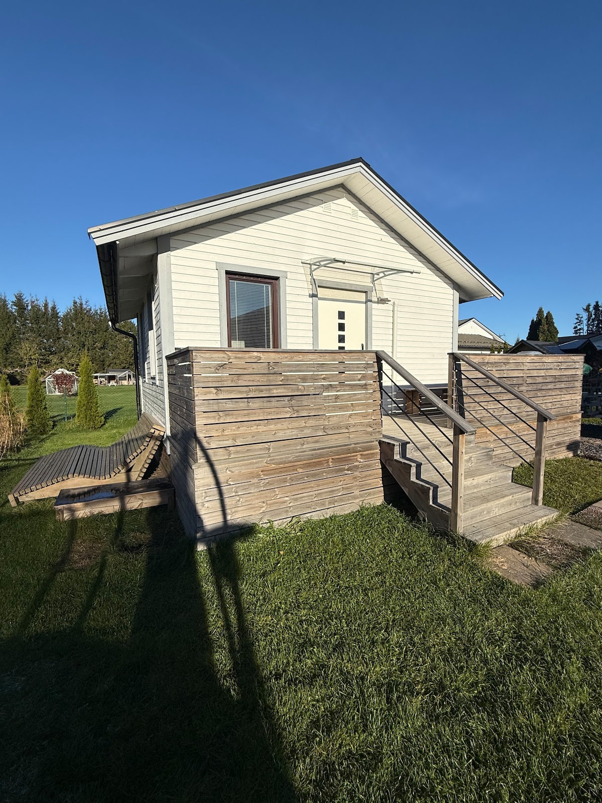 Newly built, beautiful house on a natural plot on Torö. Close nice beaches and nature. Torö Stenstrand, famous Swedish Surf spot is 4 km away (10 min by car). In the summer, the pool is open, and the skateboard ramp is available. The well-planned house is 30 sqm, with a toilet/shower, kitchen, 1 bedroom with a bunk bed, and a loft with two sleeping spaces. The living room has a combined sofa/bed. Outdoor patio with a large deck, and a grill is available. Surfboards/wetsuits can be borrowed.