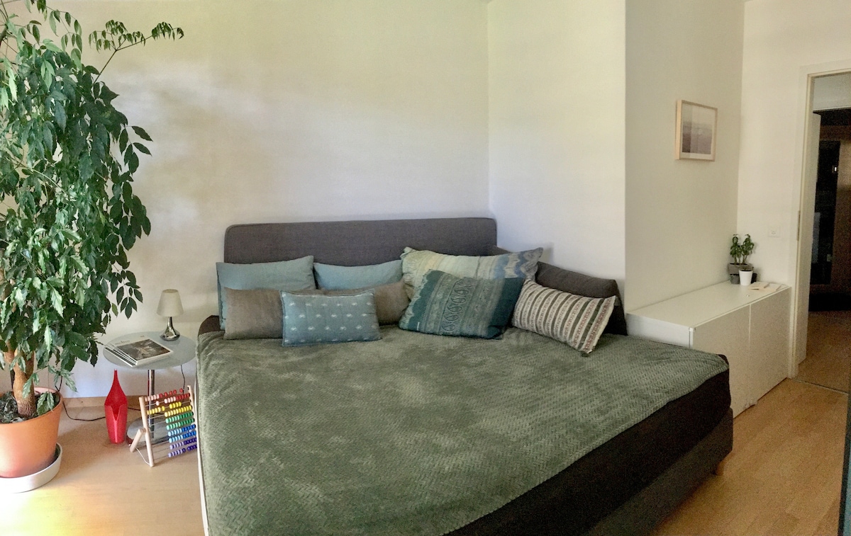 Centrally located, 10 mins walk from the train station. Very calm location which borders a forest and stream - so is very picturesque. The studio has a double bed and sofa bed (if needed). There is a washing machine, WIFI, TV, washing machine, bbq & fire pit. You can walk through the forest in 5 minutes to collect fresh milk and produce from the local farm. If you head 10 mins in the opposite direction you can be in the heart of Nyon, it’s also a 10 minute to walk to Lake Geneva plage & boats.
