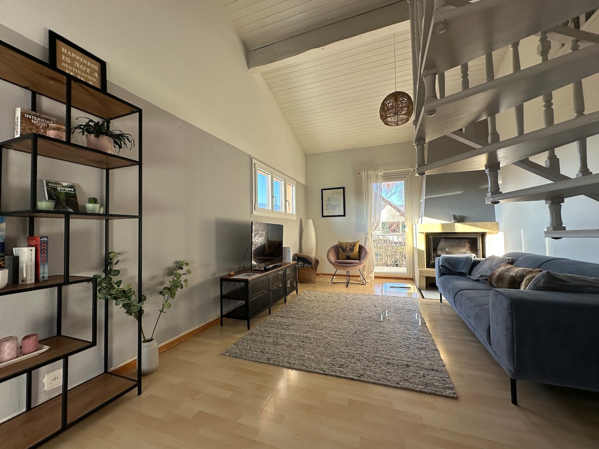 Appartement tout équipé proche de Nyon (10 minutes en bus). Rejoignez Genève en seulement 30 minutes en transport public. Venez vous détendre dans cet appartement cosy au calme après une longue journée. L’appartement est entièrement équipé : 1 chambre avec lit double 1 chambre avec 2 lits simples 🖥 1 mezzanine avec espace de travail 🍽 Cuisine équipée 🛋 Salon spacieux (wifi inclus) - 2 balcons - Place de parking devant la maison. - Entrée indépendante et arrivée flexible