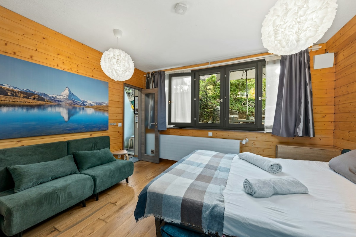 瑞士小木屋公寓,勃朗峰景观,热水浴缸,桑拿