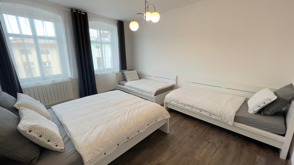 We welcome you to Zlaté Hory, renowned for the cleanest air. Enjoy the comfortable triple room with two separated bedrooms and a private bathroom at the 3* Praděd Thamm wellness hotel. We provide restaurant, wellness center, Thamm Bar with bowling, parking on site. Rich buffet breakfasts are included in price. Possibility to order half or full board as well. Pet fee 300CZK/night upon request. We are the 1st 3*hotel in the Olomouc Region according to the prestigious Czech Hotel Awards 2021!