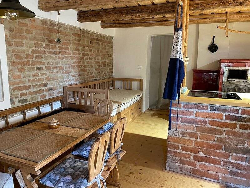 Výjimečná je zejména atmosféra a původně laděné vybavení více než 100 let starého kamenného domu spolu spolu s obrovskou zahradou se spoustou ovocných stromů. Místo je kouzelné především díky krásným výhledům. V létě pobyty od soboty do soboty, v zimě min. 3 noci a 4 osoby nebo doplatek. Energie 330 Kč/den, zvířata 100 Kč/den, brikety a uhlí dle spotřeby, rekreační poplatek 20Kč/den pro město Krnov.
