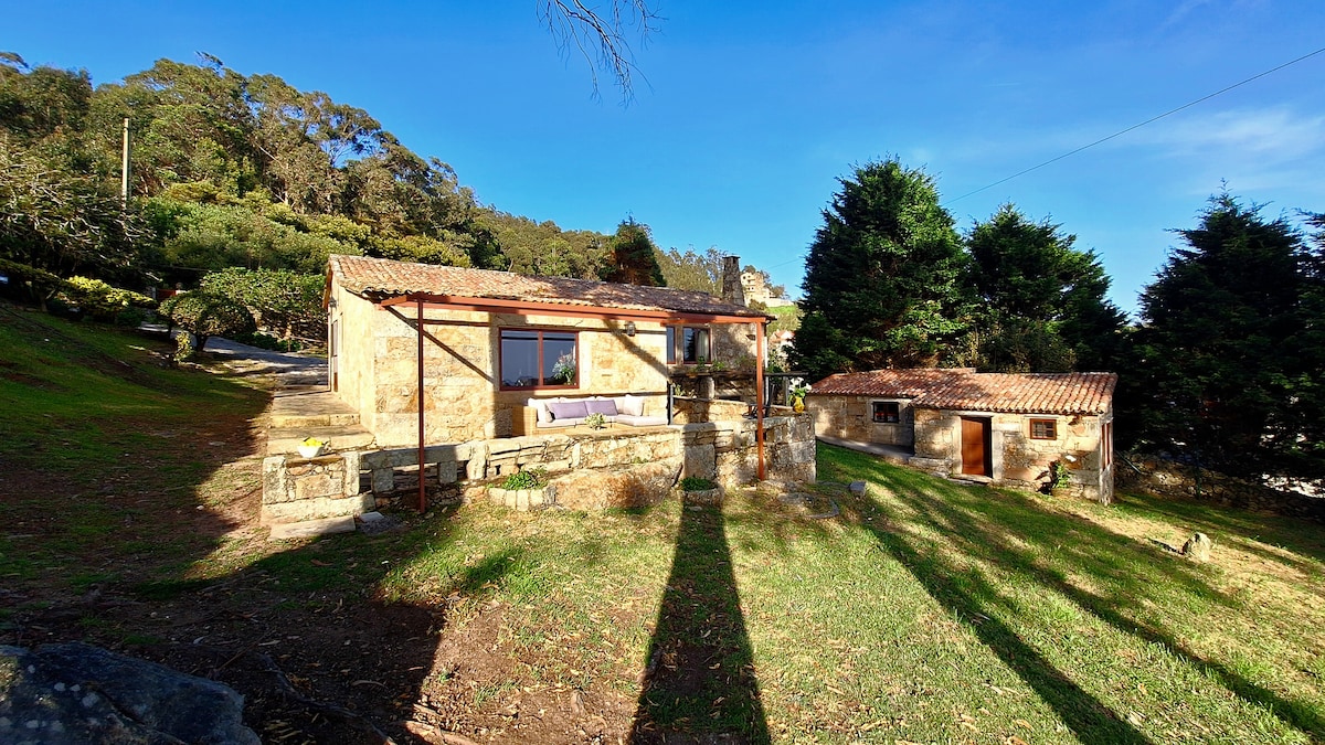 Preciosa casa de piedra reformada, situada entre el mar y el monte. Ideal para quien quiere disfrutar de la tranquilidad del rural gallego, paseando por sus bosques encantados o por las mejores playas de las Rias Baixas . Dispone de 5 dormitorios, cada uno con su propio baño, un salon /comedor grande y acogedor con chimenea, y una biblioteca y espacio de juego en la galeria. Cocina completamente equipada con microondas, cafetera Nespresso, lavavajillas. Precioso jardin con vistas.