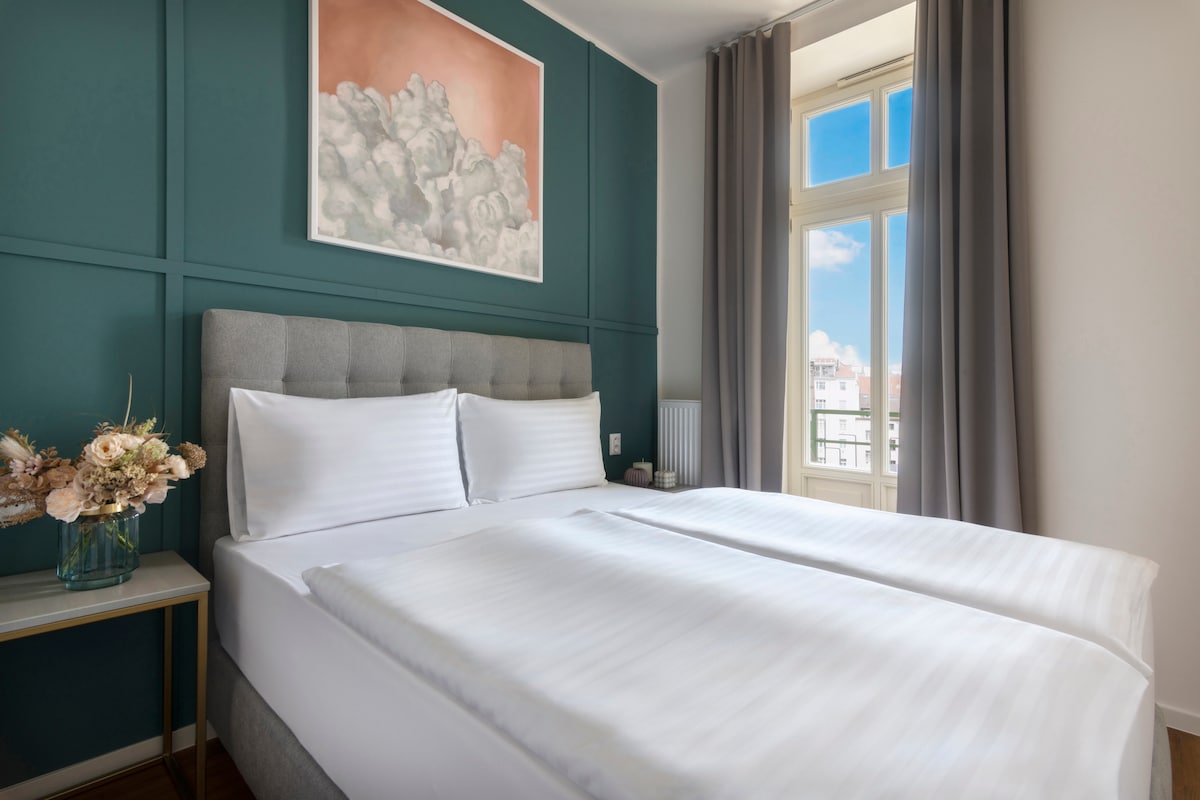 Chic Karlín Escape: Sunny Balcony & Secure Parking