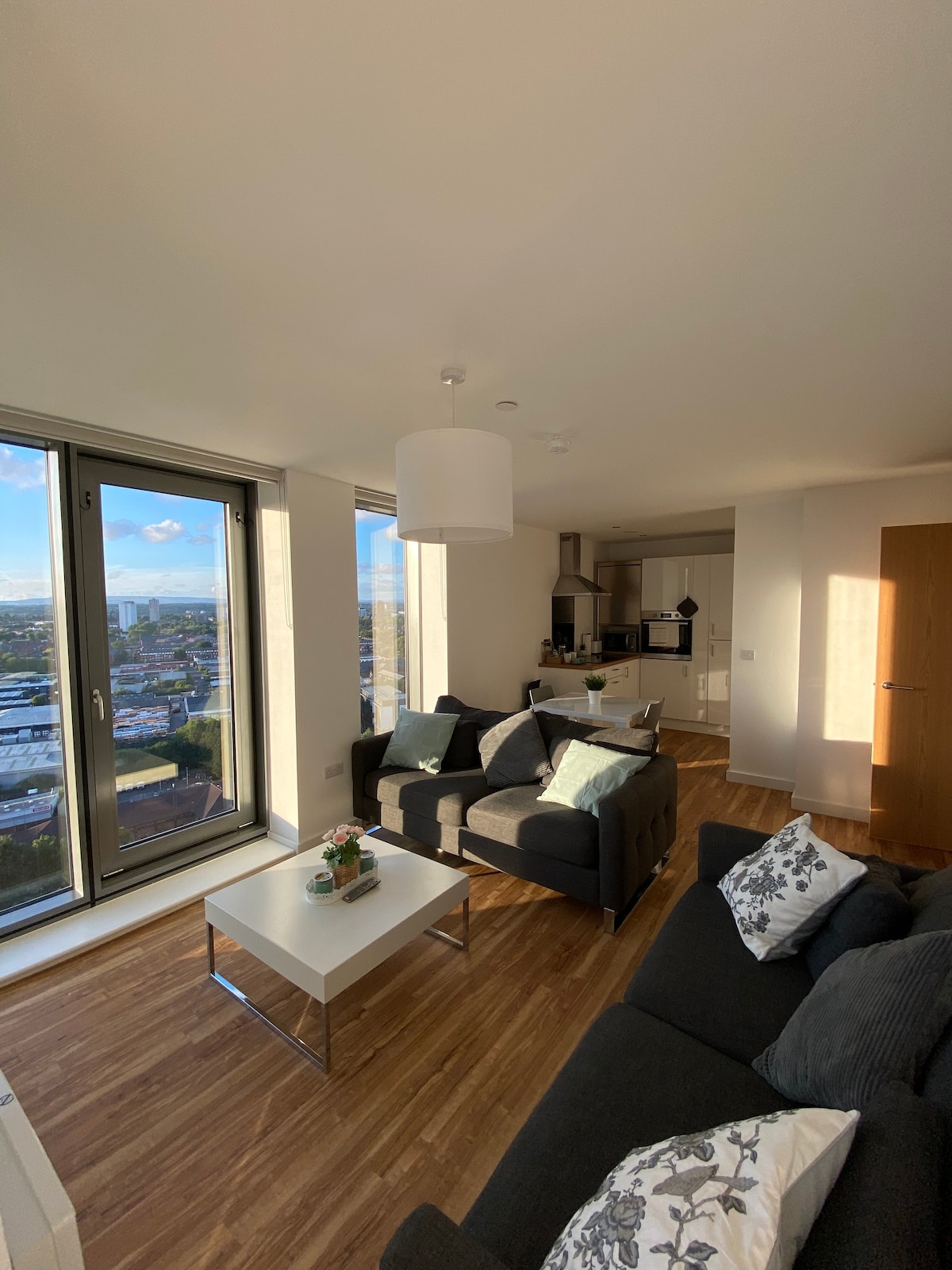 Welcome to City Haven, our stylish 1 bed flat in MediaCityUK. A newly built space designed for comfort, with stunning city views to relax and unwind. Enjoy a luxurious mattress, smart TV, sleek bathroom with powerful shower, and a fully equipped kitchen. Guests also have access to a gym, cinema room, co-working space + terrace. Moments from shops, restaurants, theatres and stadiums, with a tram stop right outside and BBC & ITV just a short walk away. Perfect for both business and leisure stays