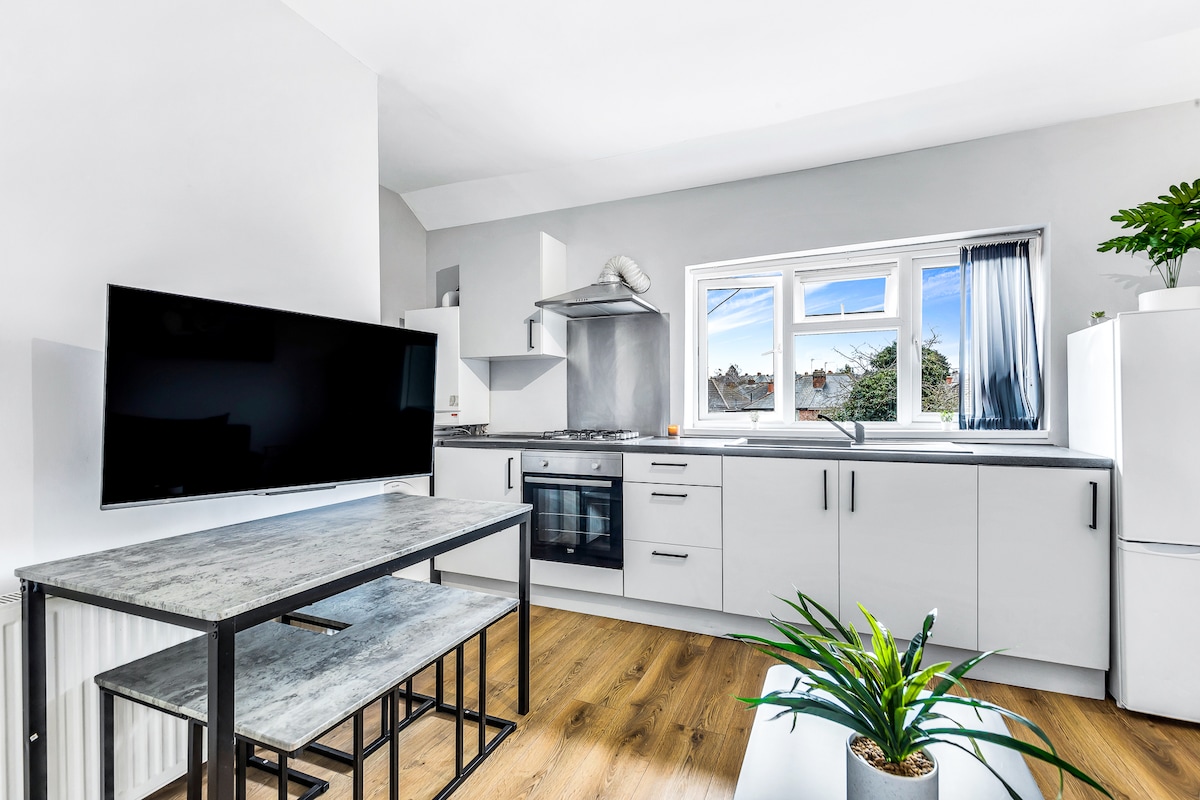 Welcome to our stylish Modern-day 2 bedroom apartment, recently refurbished. Look no further for a comfortable, relaxing stay! This property offers two large bedrooms, and a modern open plan with a garden view. This property boasts of many of its original features and has been recently renovated. Sit back and relax enjoy the Garden Views , or indulge in a movie night on our 4K Samsung TV! after a day out at the Local Leicester Race course, or a trip to the Local 5- star coffee shops!