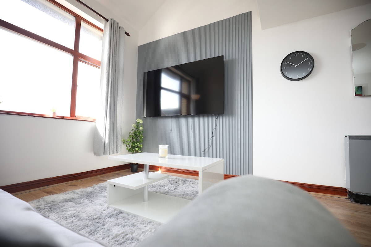 Self contained garden studio available in Clarendon Park, close to Demonfort Hall and on the main bus route to the city centre there's. The space has A/C, a small kitchenette, bathroom, workspace, corner sofa, double bed, Sky TV & Movies (Netflix, Disney etc) and an 85" home cinema. Bifold doors open out onto a spacious south facing garden & there is plenty of parking too. We have a cockerpoo who lives in the main house, she's extremely friendly & does not come into the studio unless invited!