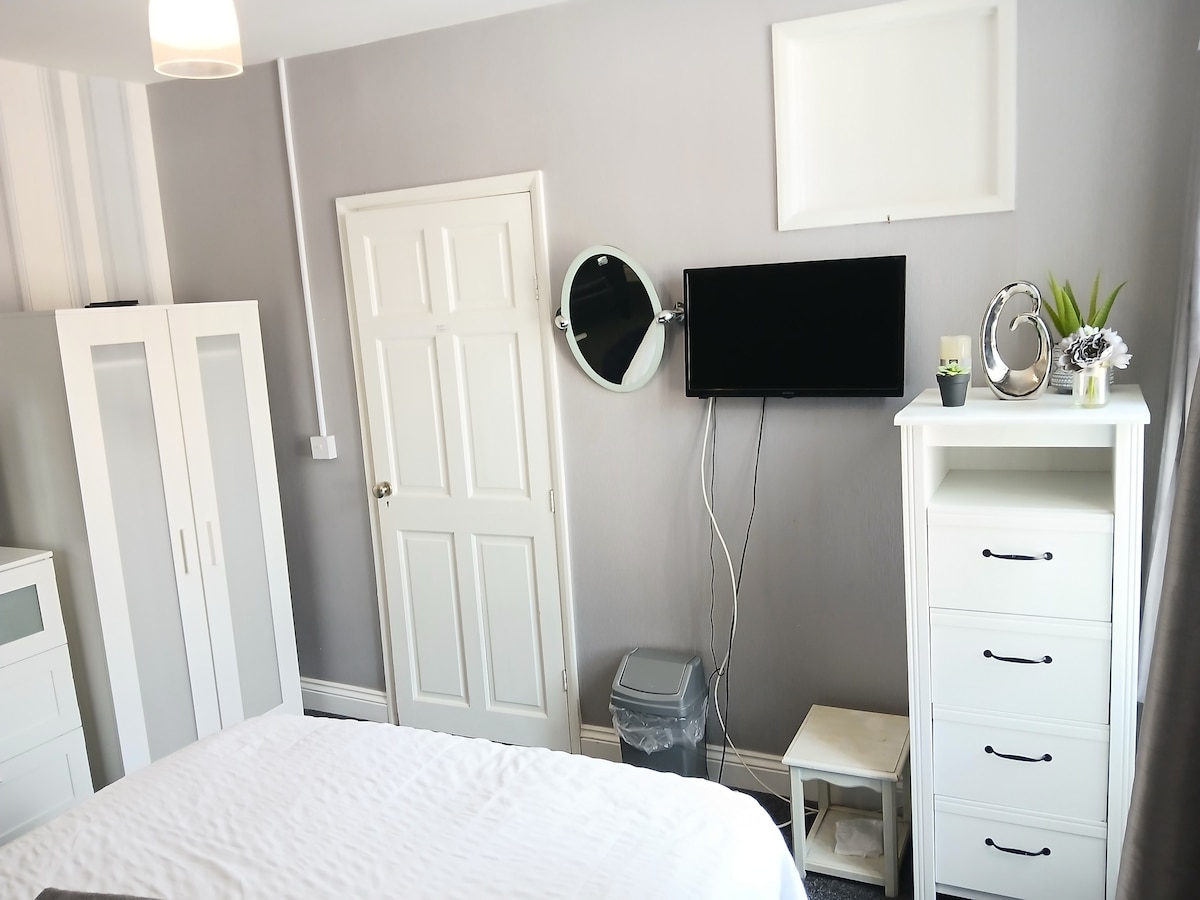 Private guest house with private separate entrance. Double bedroom with en-suite bathroom. Fully functioning workspace. TV(Netflix,Amazon prime, Disney+). Very fast WiFi. 5 minutes walking distance from Glenfield hospital. 8 minutes from Leicester City Centre. 15 minutes from King Power Stadium. No full kitchen (no cooker but microwave, toaster, kettle and mini-fridge provided). Property is part of a larger property and is situated on first floor with its own private entrance. No lift.