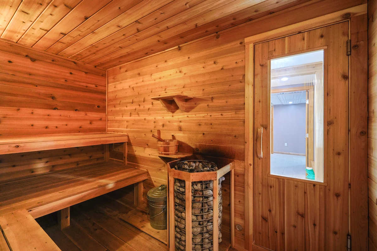5卧2卫房源,带桑拿房、7人热水浴缸、篮框、露台