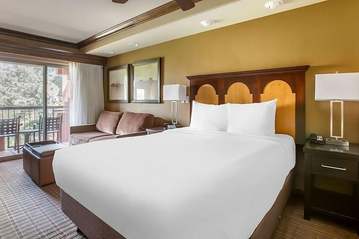 Discover the beauty of Red Rock Country at Club Wyndham Sedona. This 1-bedroom suite offers a king bed, queen sleeper sofa, full kitchen, and private balcony or patio. Enjoy the outdoor pool, hot tub, fitness center, and barbecue area. Located near Uptown Sedona’s shops, galleries, and restaurants, plus endless hiking and scenic drives, this resort blends relaxation, adventure, and comfort for your perfect getaway.
