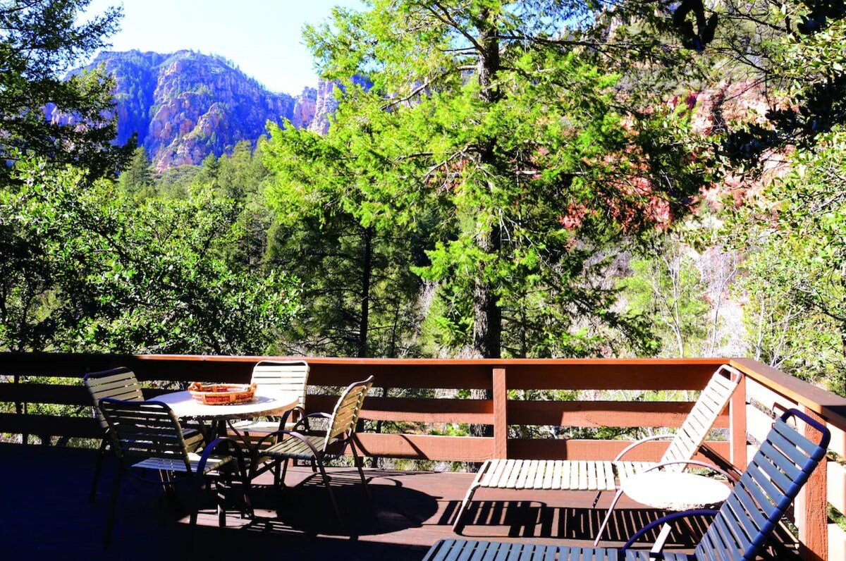 Tucked along the scenic Oak Creek Canyon, this peaceful Sedona retreat blends rustic charm with modern comfort. Wake up to the sound of flowing water, enjoy coffee on your private deck surrounded by red rocks, or cozy up by the fireplace after a day exploring nearby trails. Each spacious creek house features a full kitchen, living area, and outdoor space — perfect for couples, families, or anyone seeking a tranquil escape in nature’s beauty just minutes from Sedona’s vibrant downtown.