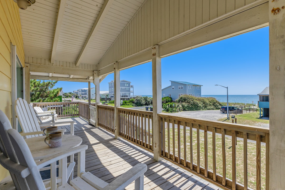 Your vacation is precious time and needing accommodations to align with expectations can’t be left to chance - you need a Shore Thing. Our 2bd/2 bath condo with full kitchen, laundry and front porch views of the ocean are ready to welcome you to tranquility. Household linens/soaps all provided so after booking grab your swimsuit, flip flops and personal toiletries. Beach access is a short walk so bring your shades to avoid the sun and glares from those struggling to find parking. Enjoy!
