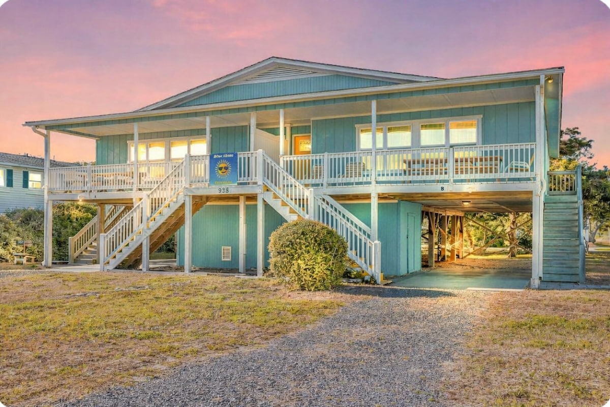 Enjoy a perfect oceanfront family getaway on Oak Island's West Beach. This 1st level unit of our beach house has separate entrance, two bedrooms, one bathroom, and sleeps six guests. The kitchen is fully equipped with pots, pans, utensils, full size fridge, microwave, stove/oven, and dishwasher. Enjoy sunrises and sunsets on the huge deck watching the waves and the occasional dolphins. If your dates are not available, please check out our 2nd level unit availability at www.airbnb.com/h/oki2