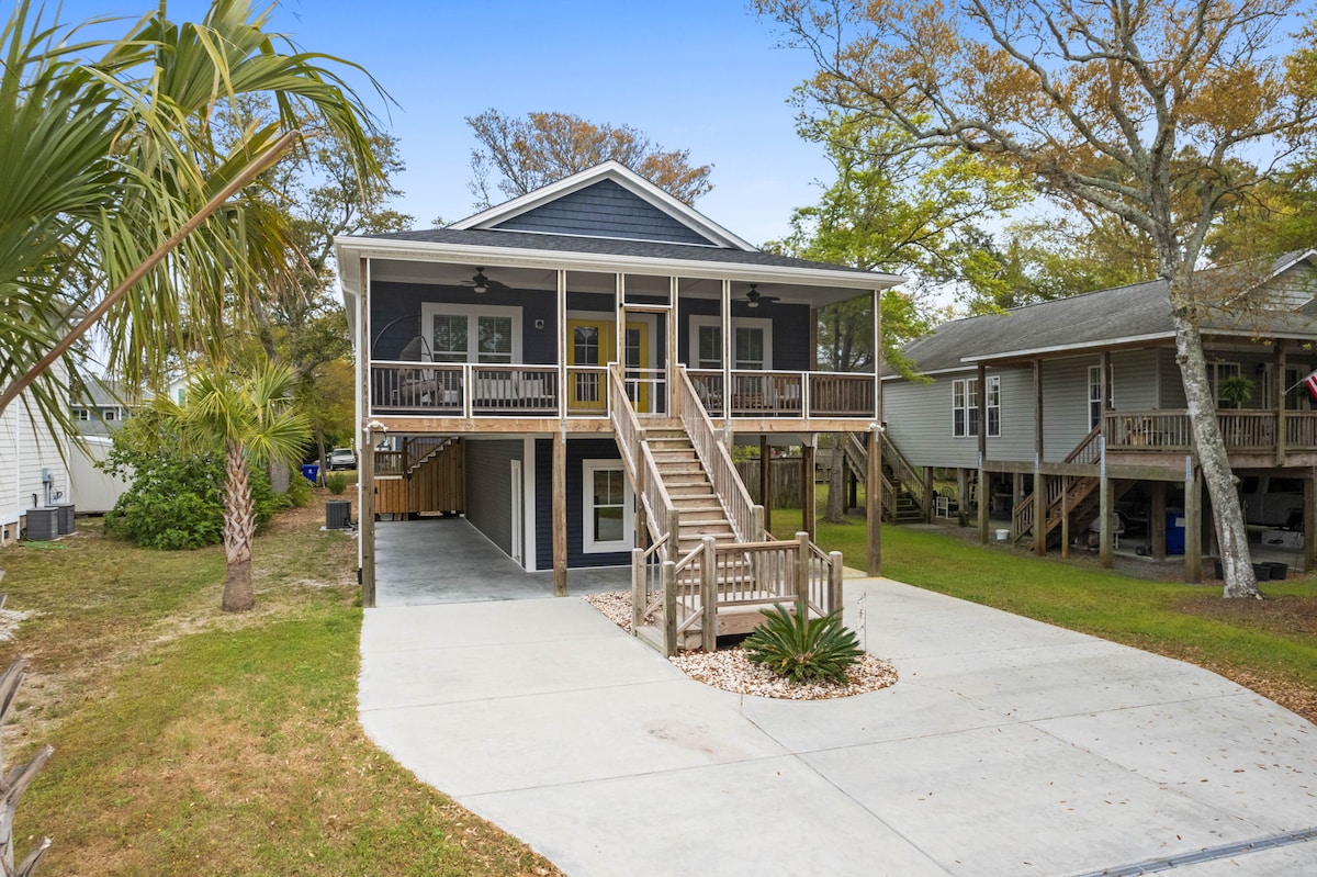 Welcome to "5 More Minutes" beach house located near the ICW and Wooded section of Oak Island, NC. This open-floor plan home on pilings is on the island's west side and features a three-bedroom (three-bath)/two-full-bathroom configuration. Oak Island beaches are a short one-mile walk or drive away. We offer a 6-seater electric golf cart with a pre-paid parking pass to rent by the day. You must be over 21 to operate it. The golf cart rental fee is handled separately from the house rental.