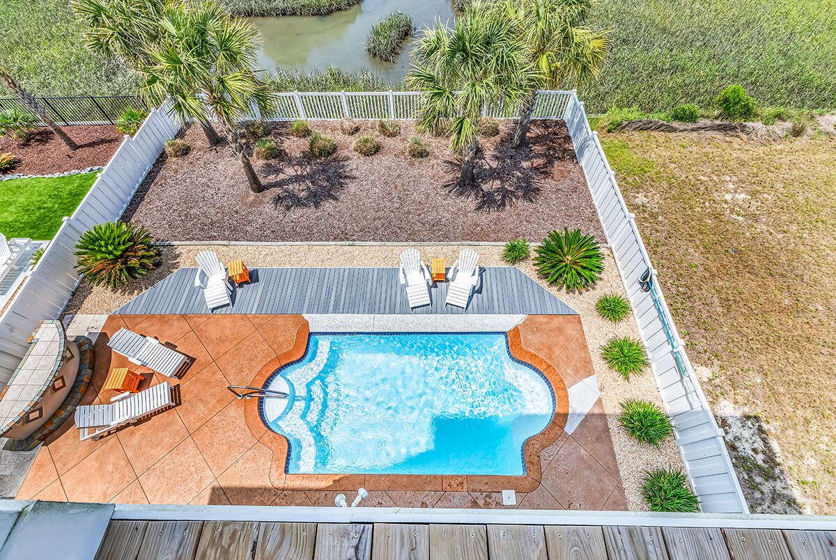 Happy Hour at OKI by Hearth and Horizon Family Getaways – Just a 4-min verified walk to the beach! ✔ 4-minute walk to beach access ✔ Private heated pool ✔ Fully fenced backyard (perfect for pets) ✔ outdoor dining under a pergola, and a fire pit (wood provided). ✔ Arcade + air hockey for family fun ✔ Fully stocked kitchen for home-cooked meals ✔ Relax in 2 king bedrooms, including a spa-style primary bath with rain shower. ✔ Beach chairs, wagon & essentials included ✔ Quiet family neighborhood