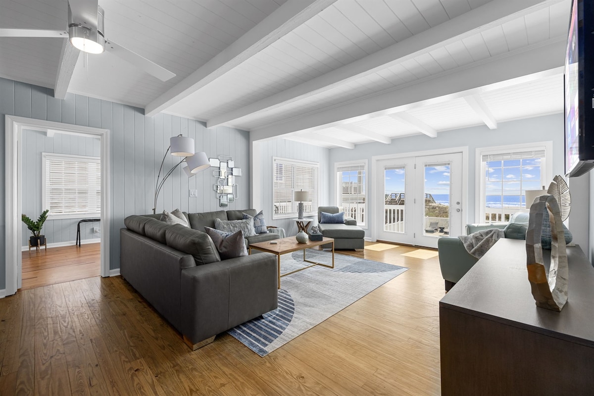 Welcome to “The Boys of Summer Rentals,” a favorite oceanfront escape with direct beach access and a fresh new feel. Unwind with sunset views from the deck, enjoy fast WiFi and smart TVs, and walk just minutes to shops, dining, and groceries. Step straight from your fenced yard onto the beach—perfect for kids and pets. Soak in unforgettable sunsets from the spacious sun deck or relax on the covered porch.
