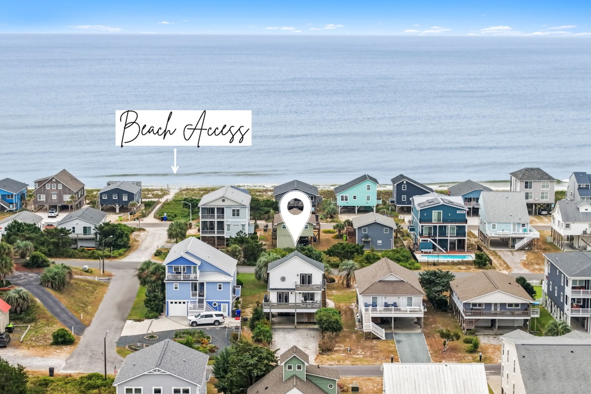 Take a break & unwind at this peaceful oasis. Come relax under the covered deck & hear the ocean breeze! Direct beach front vacation home, just steps from the ocean. With enough space to sleep 9 this beachfront cottage offers beachy interior design & has recently been completely renovated new flooring, cabinetry, quartz countertops. Whether you're in town to fish off the coast or soak up the North Carolina sun on scenic Oak Island, you can't beat this updated beach getaway! Hit ❤️ to save!