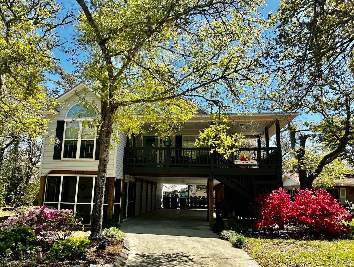 BRAND NEW deck and outdoor shower! Fully fenced yard! NO pet fees! We are ready to host you in 2026. Relax outdoors in the huge screened porch with fans and a TV or in the backyard around the fire pit. Inside you'll find 3 spacious bedrooms and 2 baths with room for 9. A Fully stocked granite & stainless kitchen & open concept living is perfect for family time. Beach chairs and wagon provided. Plenty of parking. Linens included & arrive made beds! Less than a mile to the beach!