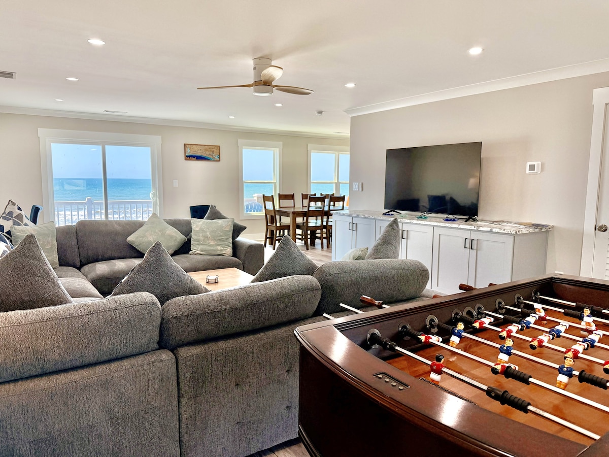EPIC OCEAN-VIEW Escape! Sleeps 12 in luxury just 3-min to sand. Insane rooftop deck + glow-in-dark putting green. Yard and rooftop Pergolas w/ fire pit & cooling mist. Pro-level air hockey, full-size pinball (100+ tables), racing simulator, pop-a-shot basketball, light-up cornhole. Granite kitchen, stainless appliances, gas grill, beach gear, outdoor shower, elevator, parking for 4 vehicles. The ultimate Carolina Beach game house – kids & adults lose their minds! Book now!