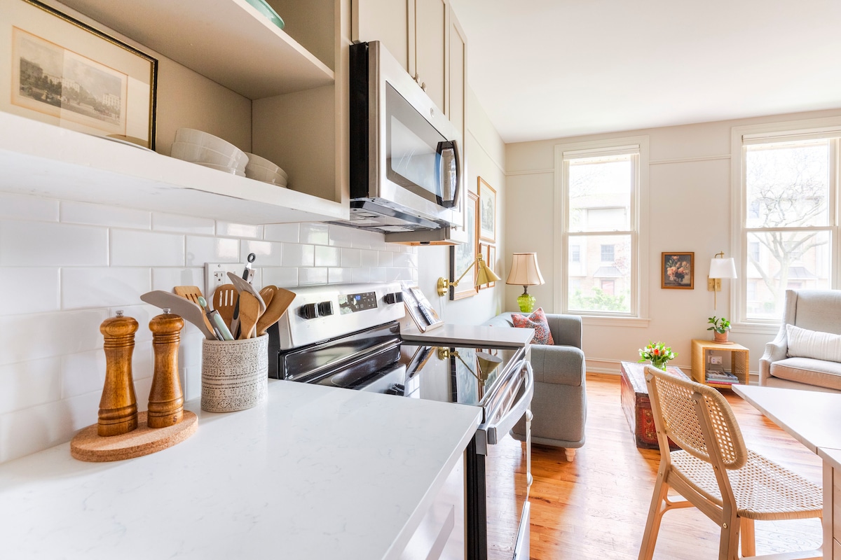 阳光明媚的单卧公寓,距离餐厅仅1个街区