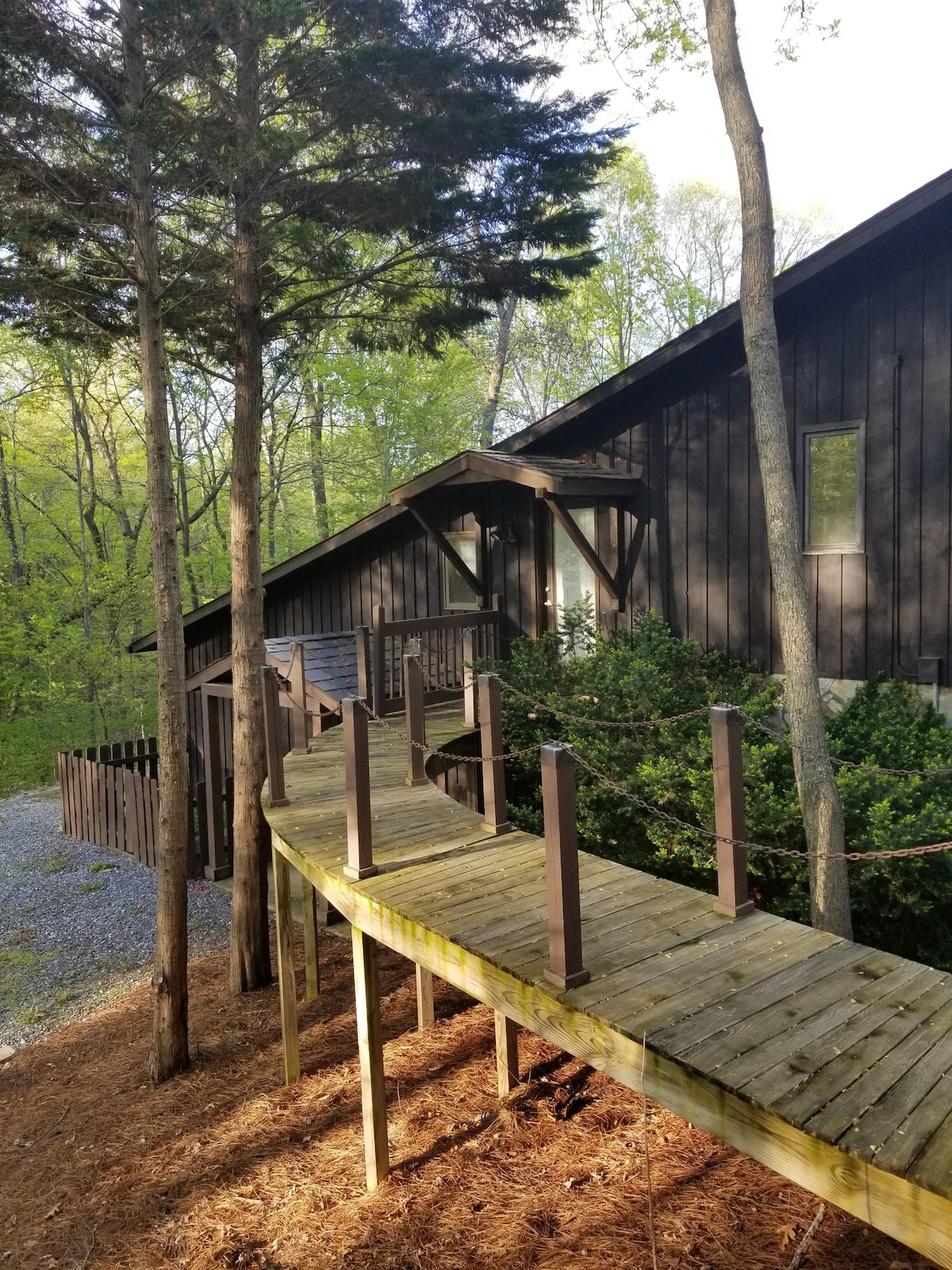 Our space features a queen bed & two sleeper chairs, TV w/ Roku, full kitchen, & bath w/ walk-in tub. This is a MIL apartment attached to our house on 9.5 wooded acres. It is NOT outfitted for children. SMOKING/VAPING IS NOT ALLOWED ANYWHERE ON THE PROPERTY. Long term stays welcome! Convenient to the Triad and points beyond. It's safe & quiet, & you can roam most of the property. Multiple security cameras outside. NEW: Fenced-in yard for off-leash playtime for your dog!