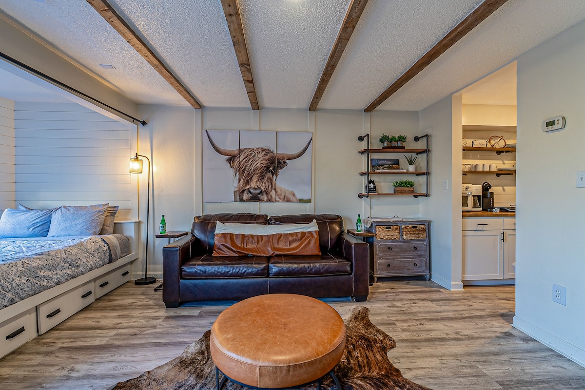 A picturesque residential location with proximity to downtown, the University of TN, and outdoor recreation make this charming apartment ideal for your next Knoxville vacation. Modern and fresh with luxury finishes, the 1bed/1-bath space comfortably accommodates up to 4 guests, and every room in the residence are impeccably styled with soothing tones & decor that perfectly embody the area’s natural beauty. Whether visiting for business or pleasure a stay here feels like home-away-from-home.