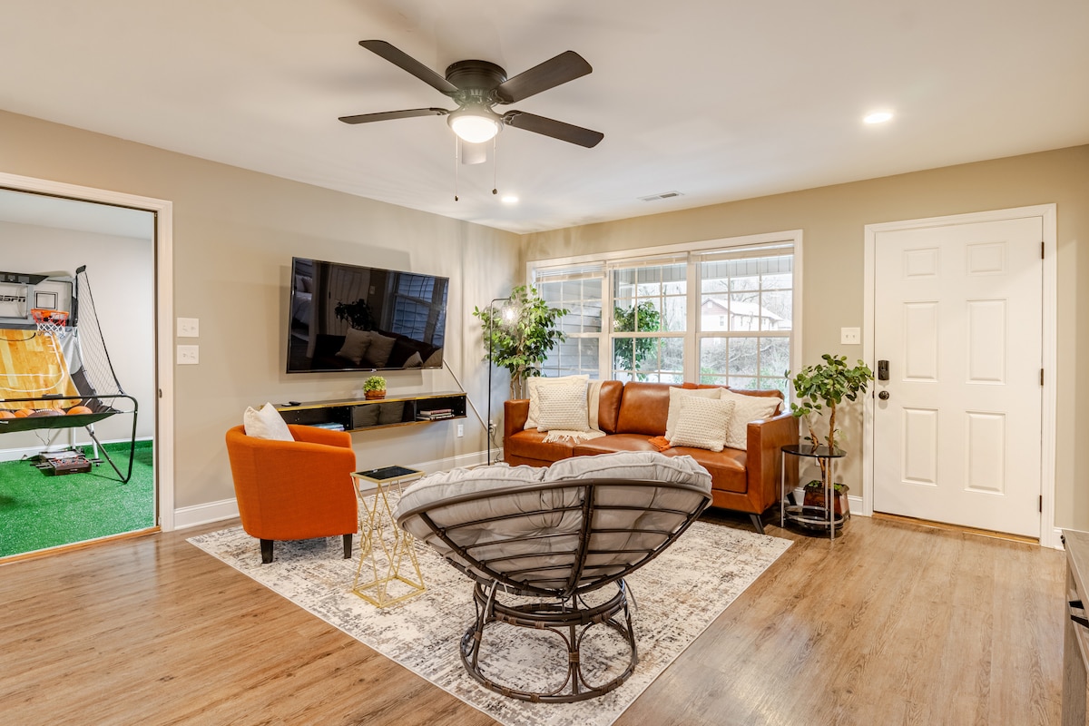 Escape to our charming basement suite on a picturesque farm. Immerse yourself in a delightful modern farmhouse ambiance, complete with all the amenities you need for a blissful stay. Conveniently located just 20 minutes from Knoxville and 35 minutes from the magnificent Great Smoky Mountains and Pigeon Forge. Don't miss the youth rodeo on the first Sunday of each month (Apr-Dec). Discover tranquility, comfort, and excitement in our cozy basement retreat. Reserve your unforgettable getaway today.
