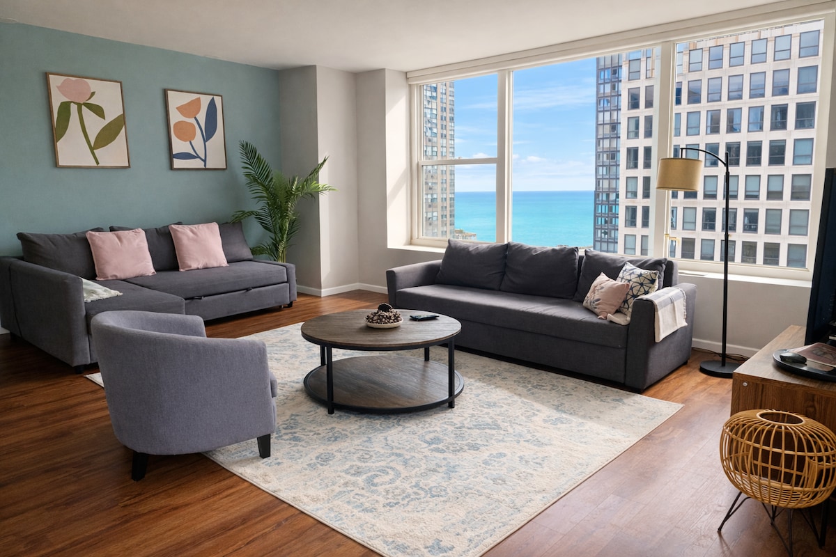 Welcome! Guests love our home because: - You're SECONDS from the LAKE and MAGNIFICENT MILE - You're steps away from the famous Drake Hotel and Oak Street Beach. - Walk to every popular attraction that makes Chicago so great! - Newly remodeled interior with an open floor plan layout - Parking spot on-site in/out access!! - Tranquil rooftop overlooks Lake - Fast WIFI - Super comfy beds! - Custom chef kitchen - Located on a quiet street - Lake Michigan view from our floor-to-ceiling windows