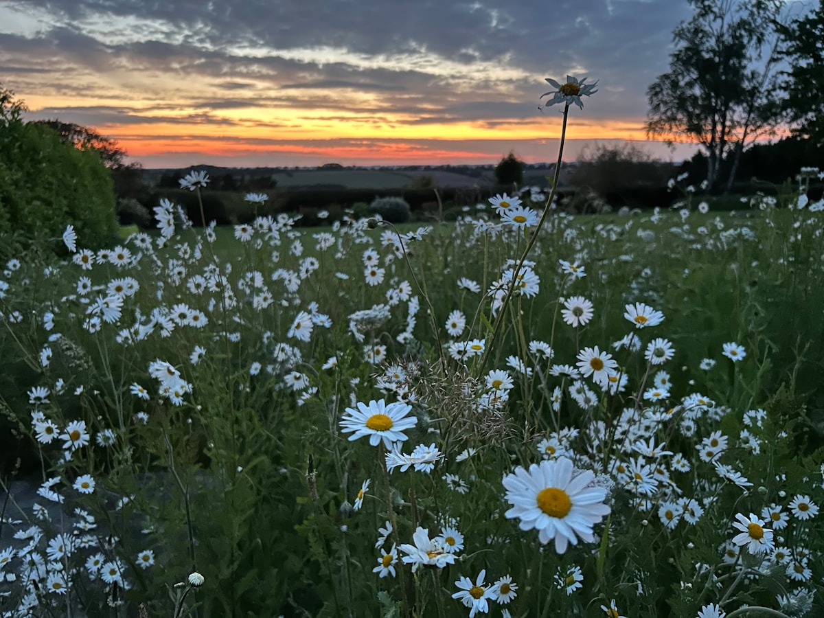 乡村3卧室谷仓、田野景观、停车位、花园