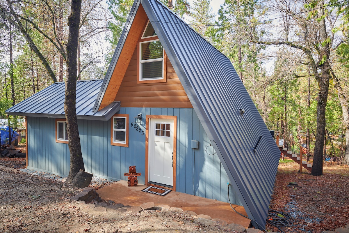 Our IMPECCABLY BRAND-NEW A-FRAME nestled amidst the whispering pines and ancient oaks evokes the warmth of home and the thrill of adventure. Drink in UNPARALLELED VALLEY VIEWS as you settle into a space where MODERN ELEGANCE dances with nature. JUST 13 MILES from YOSEMITE NATIONAL PARK's gate, and moments from Bass Lake, you're retracing the path of the stagecoach as it journeyed to the park. Embrace the 12.2 acres of SERENE, mountainous BEAUTY with a HOT TUB, on a PRIVATE road.