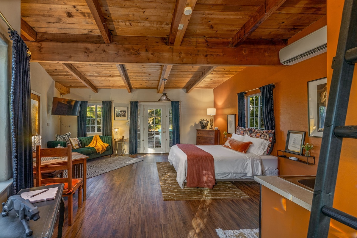 Welcome to Studio 426 — a stylish and comfortable studio retreat. Warm wood ceilings, eclectic modern furnishings, and thoughtful touches throughout make this space inviting, cozy, and easy to settle into. Whether you’re exploring Yosemite, enjoying Bass Lake, or simply needing a peaceful place to rest, Studio 426 offers a quiet, private, and uplifting home base.