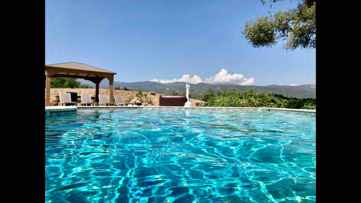 Where else can you book a mountaintop? Escape to our 122-acre ranch, a secluded retreat nestled in the serene foothills below Yosemite. Here, you’ll enjoy panoramic vistas, tranquil solitude, and the perfect blend of adventure and relaxation. Explore nearby lakes, rivers, hiking trails, gold rush history, ghost towns, and Yosemite National Park. Afterward, retreat to your private sanctuary to unwind under the stars in your very own pool and hot tub.