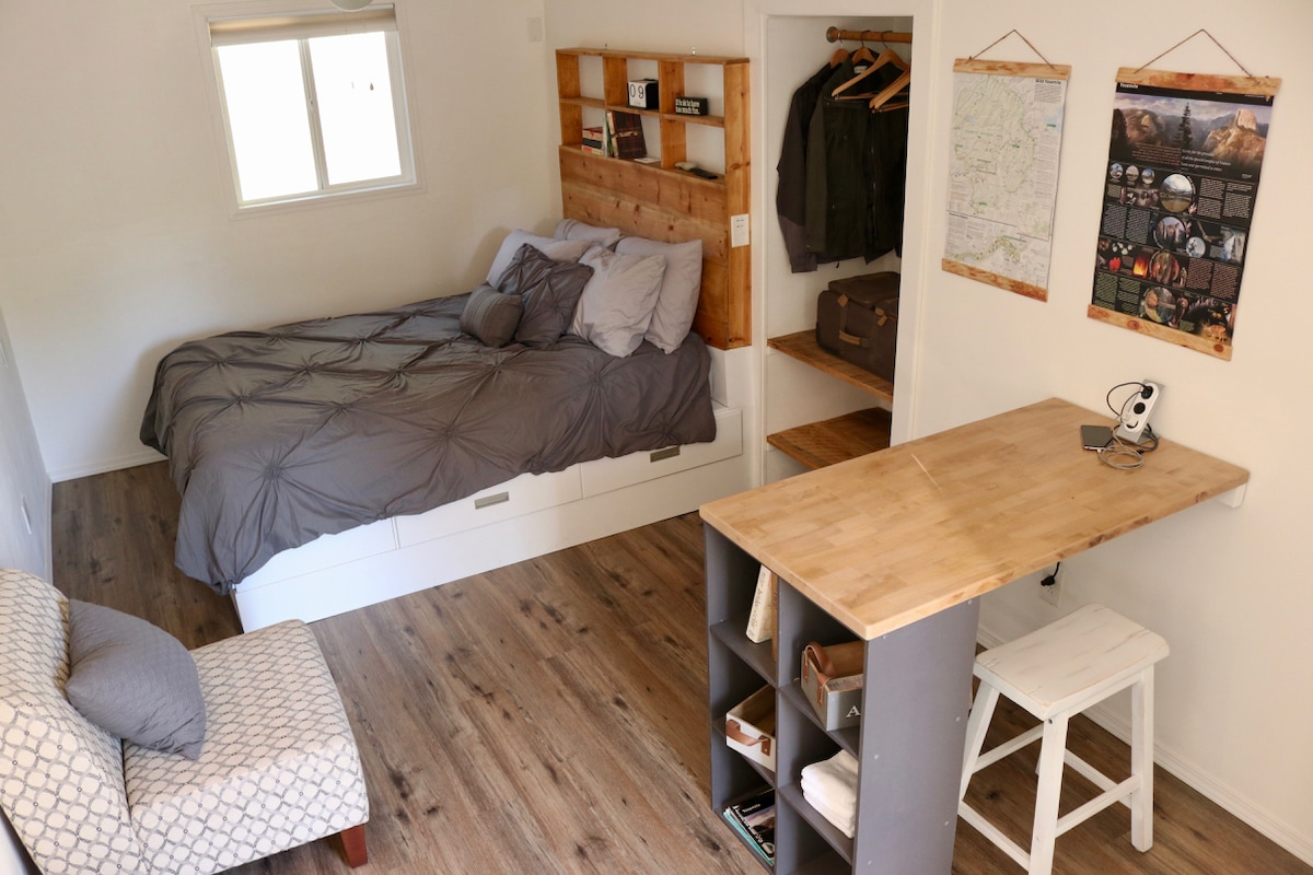 This one bedroom, one bath Airbnb is conveniently located in Eastern Madera County close to Yosemite, Bass Lake, ski resorts and more. This newly remodeled cutie has a private entrance, it's own patio and parking. Living area has a queen size sofa bed with a handy, well equipped full kitchen. The bedroom has a cozy queen bed, small desk and armoire for your comfort. The bath is located just off the bedroom. Set on a beautiful acre plus of oak trees and natural landscape.
