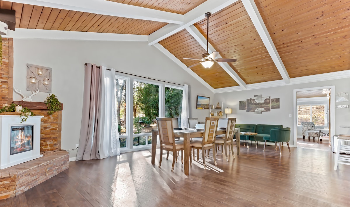 Welcome to the Buckeye Treehouse. A serene oasis situated amongst Maple, Oak, and various Fruit Trees, cultivating a calming connection with nature. Sunlight and greenery fill the house from windows and skylights at every turn. The soothing lull of the year round Lewis Creek in the backyard can be heard from every room. This 3 bedroom house each with ensuite bathrooms, sits along 160 ft of creek frontage and is the perfect place to rejuvenate, center, and alight on peace during one’s travels.
