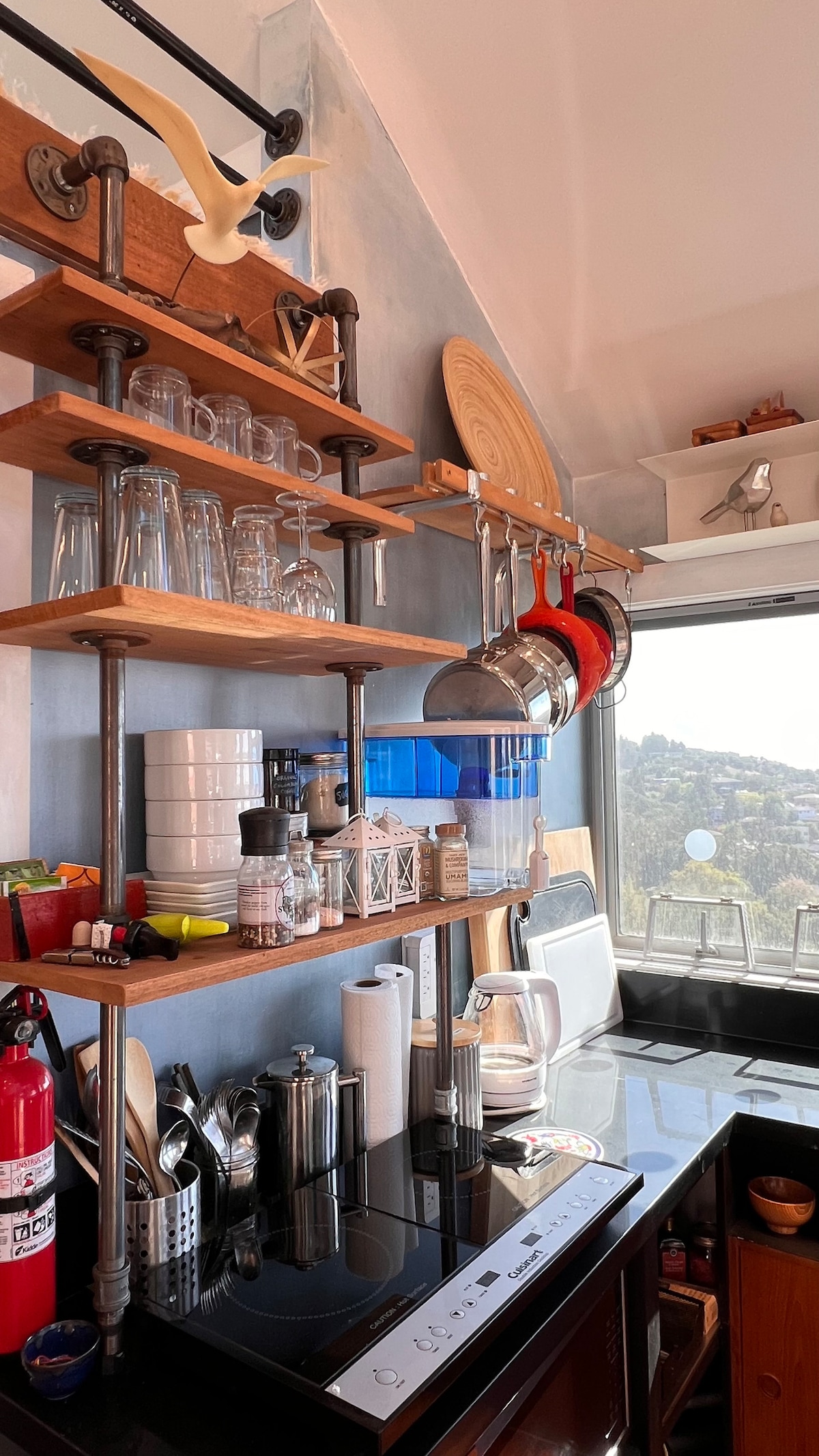 Hike up to a well designed, small-but-mighty modern cabin with fast WiFi, your own hot tub and a panoramic view spanning across the bay from the Golden Gate to the San Mateo bridge. 108 stairs lead up to the Aerie, so if you don’t want to get your steps in, this is probably not the space for you! 15 min from OAK and city life, but a world away. Sunsets are glorious here. The Aerie is a special spot just for 1 or 2, so leave the posse behind. Registered guests only.