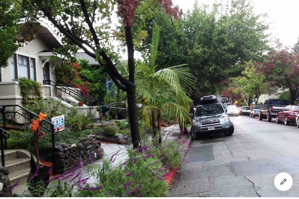 We're avid travelers who for years have liked to provide an affordable space for fellow travelers too--all amidst our beautiful neighborhood (guests always rate the Location as 5.0!) Great location on a quiet street, and you WON'T need a car in this neighborhood! Simply walk 2 blks down the quiet tree-lined street to College Ave...where you'll find all the cafes, bookstores, clothing shops & restaurants of Rockridge! Truly a secluded paradise, yet only a 20 min train ride from downtown SF! :)
