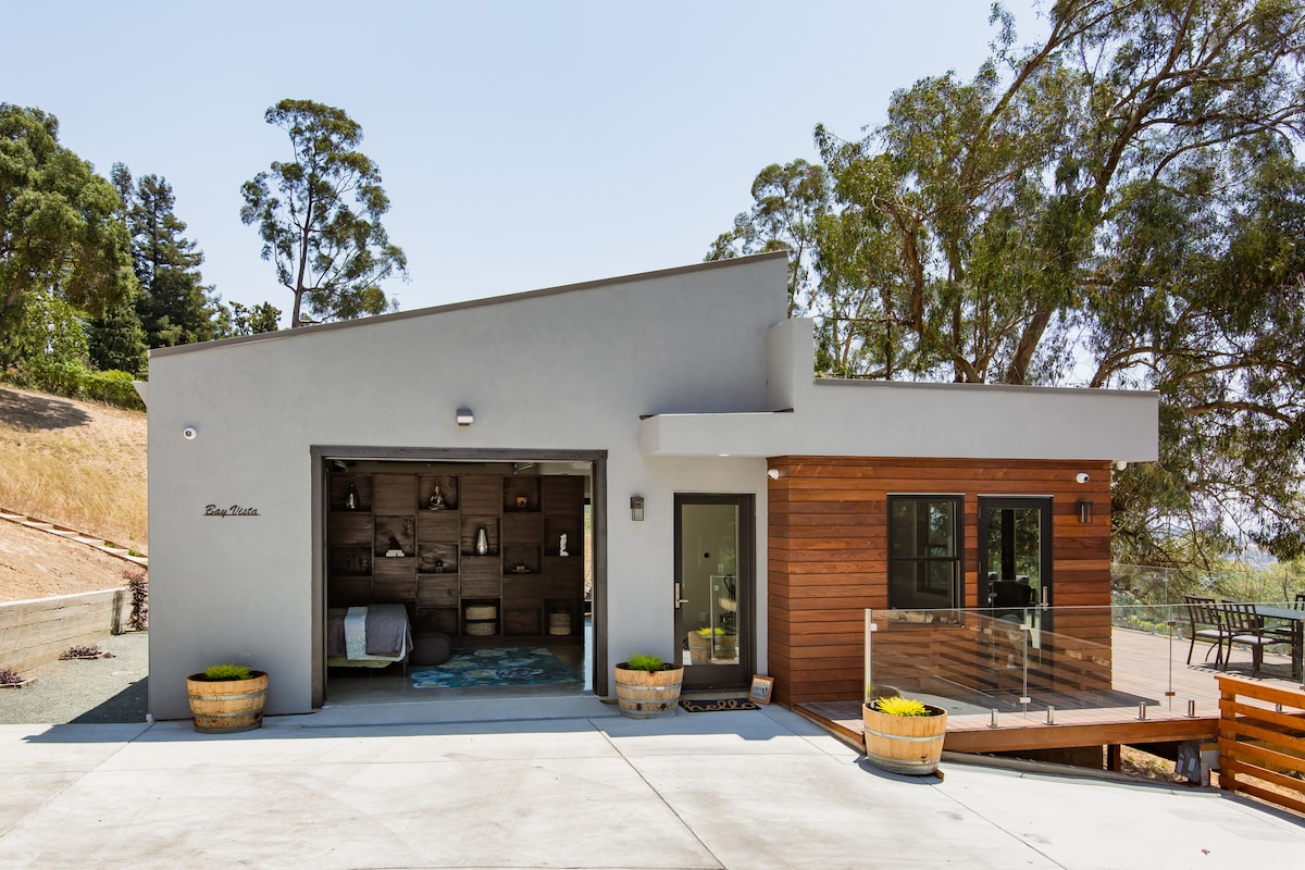 Kick back and relax in this calm, stylish space. The Oakland Hills are filled with amazing hiking, this location is great for day trips to Napa (35 miles), San Francisco (11 miles) or Carmel (120 m). Centrally located for work or play. This open concept 2 bedroom is a peaceful break away. Given the open concept design - there is not a lot of privacy between bedrooms, just a big bookcase room divider b/w the rooms. There are a few sitting area's outside and a green roof too! And EV charging.