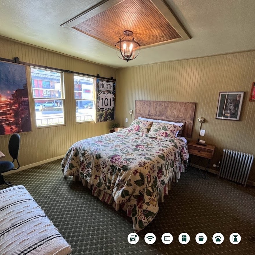 This Lombard Street facing Family Room has a Queen Size Bed. This is a small family-run motel in the Marina district, close to Cow Hollow and Pacific Heights. The entrance to this room is on Lombard Street, please be advised that the rooms facing Lombard Street incur traffic noise, though do have their own dedicated parking garage. The room is dog friendly. Sorry, no cats are permitted.