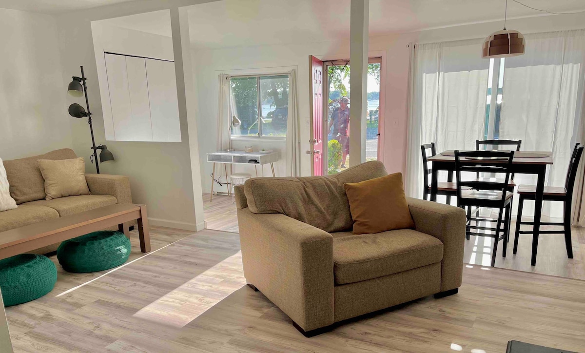 Unique one-room cottage on the bank of the Huron River. A half-mile walk to the pedestrian-friendly Village of Milford, known for its array of shops, restaurants, outside dining, concerts, and festivals. Perfect bungalow for single, couple, or small family. Living area has double sofa bed. Tiny home with many unique features. Fire pit at river's edge for relaxing or roasting marshmallows, and a gas grill on the dining patio. Two sit-in kayaks available May 15–Oct. 15.